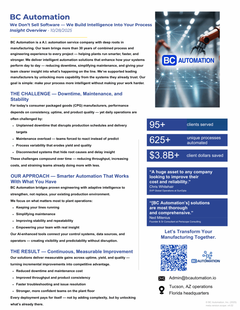 An incredible example of machine learning in practice, providing our client with more than $600,000 of annual savings. Machine learning (ML) and artificial intelligence (AI) are more common in modern manufacturing than most people realize—and they’ve already revolutionized manufacturing. Let’s dig a little deeper to see how applying machine learning can unlock capacity, improve quality…
